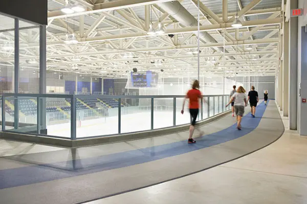 picture of the wlaking track over looking an ice rink at the wayne gretzky sports centre in brantofrd