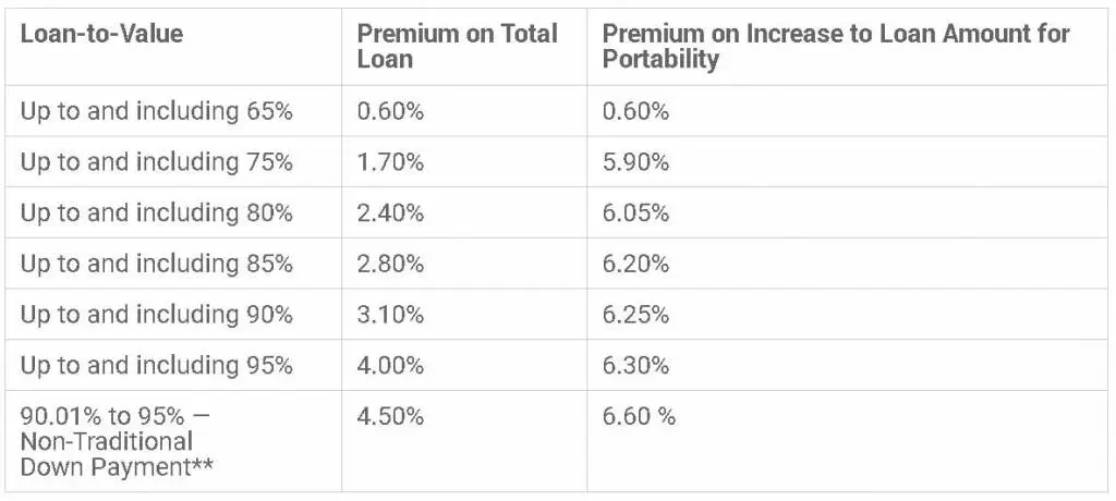 CMHC Insurance is another term for Mortgage Default Insurance which you need to purchase when putting less than 20% down. This protects your lender in the event that you don’t meet your mortgage payments. Mortgage insurance is calculated as a percentage of the value of the mortgage amount.