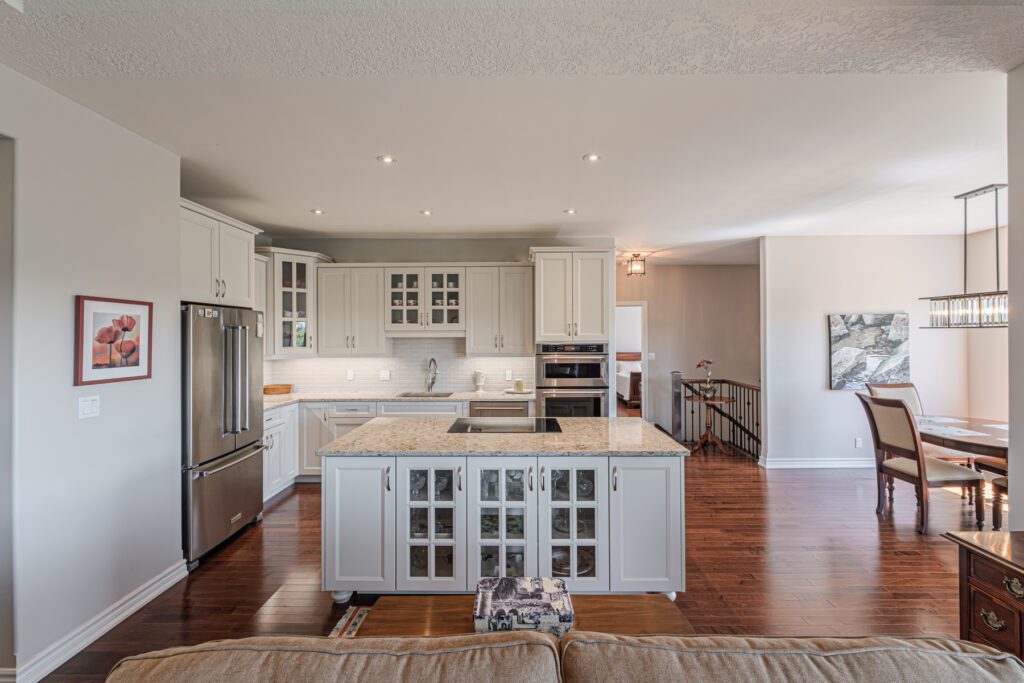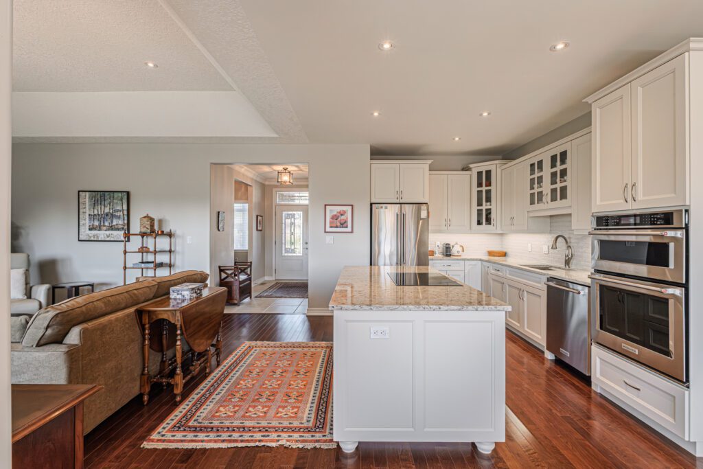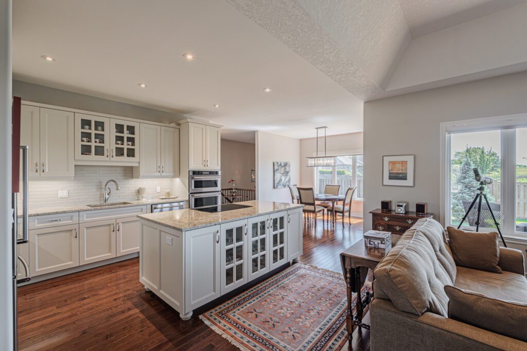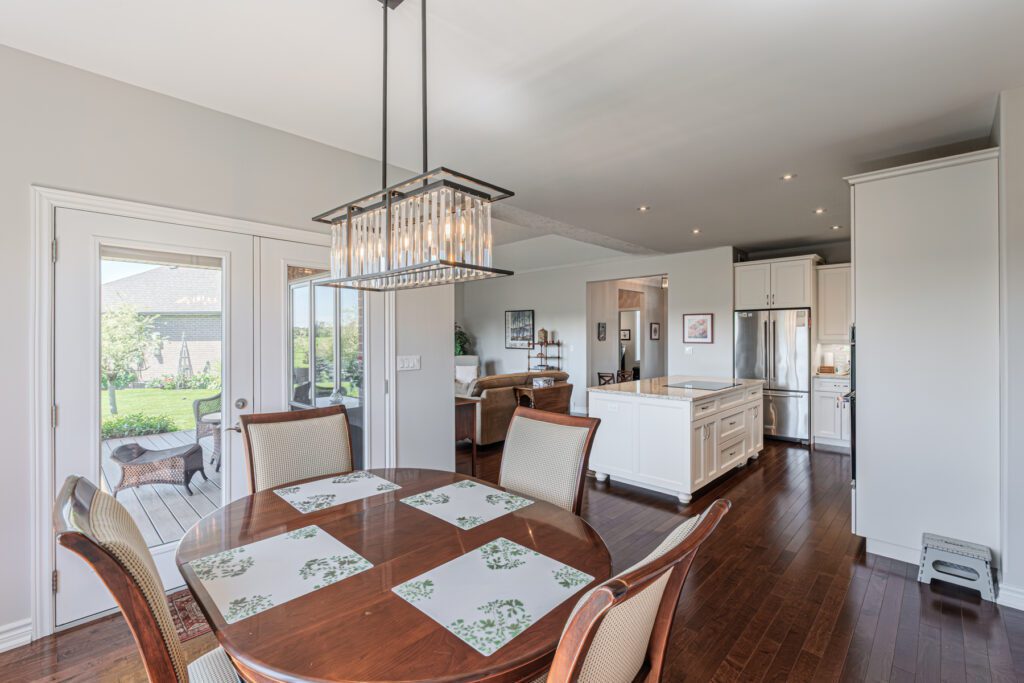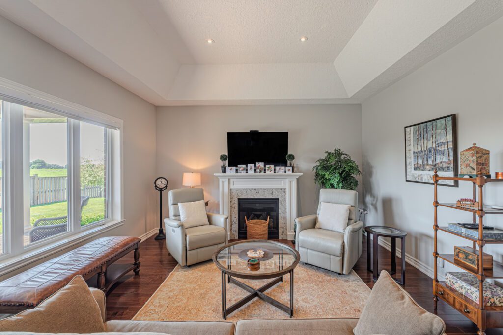 Welcome to this beautifully maintained 3+1 bedroom, 2-bathroom bungalow with an attached 2-car garage, located in the highly sought-after town of Waterford. Step into a bright and inviting foyer that leads to two spacious bedrooms and a stylish 3-piece bathroom. The heart of the home features an open-concept kitchen, dining, and living area—perfect for entertaining. The kitchen showcases modern white cabinetry, quartz countertops, and stainless steel appliances, while the cozy living room offers a gas fireplace and a panoramic window with views of the expansive back deck. The primary suite includes a walk-in closet and a private 3-piece ensuite. A convenient laundry room with garage access completes the main floor. Downstairs, you’ll find a large recreation room ideal for family movie or game nights, a fourth bedroom, a 4-piece bathroom—perfect for guests or teens—and a generous utility/workshop area for all your storage needs. Enjoy peaceful views from the back deck overlooking open fields or explore Waterford’s charming small-town vibe, scenic trails, and local restaurants. Don’t miss this opportunity—book your private showing today!